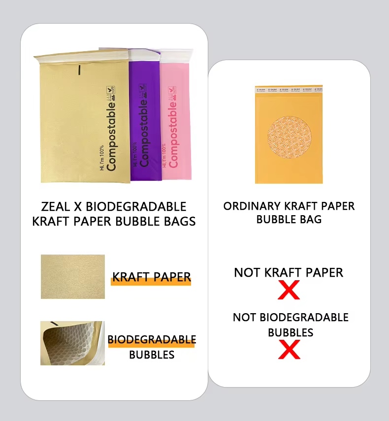 एक पेशेवर पेपर झोला निर्माताको रूपमा, Zeal X ले पूर्ण रूपमा अनुकूलन योग्य बायोडिग्रेडेबल क्राफ्ट पेपर बबल मेलरहरू, अनुकूलन आकारहरू, लोगो प्रिन्टिङ, र कागज वजन विकल्पहरू समावेश गर्दछ। यी कम्पोस्टेबल मेलरहरू 100% बायोडिग्रेडेबल, गैर-विषाक्त र प्रदूषण-मुक्त छन्, जसले तिनीहरूलाई दिगो प्याकेजिङ रणनीतिहरूको लागि आदर्श बनाउँछ। बलियो आँसु प्रतिरोध, हल्का तौल डिजाइन, र एक्सप्रेस डेलिभरीको लागि भरपर्दो सुरक्षाको साथ, हाम्रा क्राफ्ट पेपर बबल मेलरहरू पर्यावरण-मैत्री, प्लास्टिक-रहित ढुवानी समाधानहरू खोज्ने विश्वव्यापी ईकमर्स विक्रेताहरूद्वारा विश्वास गरिन्छ।